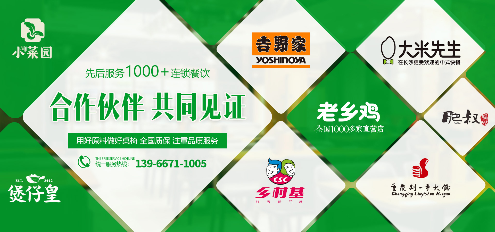博偉餐飲家具擁有兩大工廠和專業(yè)的家具展廳,先后和老鄉(xiāng)雞,大米先生,小菜園,德莊火鍋,劉一手火鍋等供應商指定餐飲家具服務商。